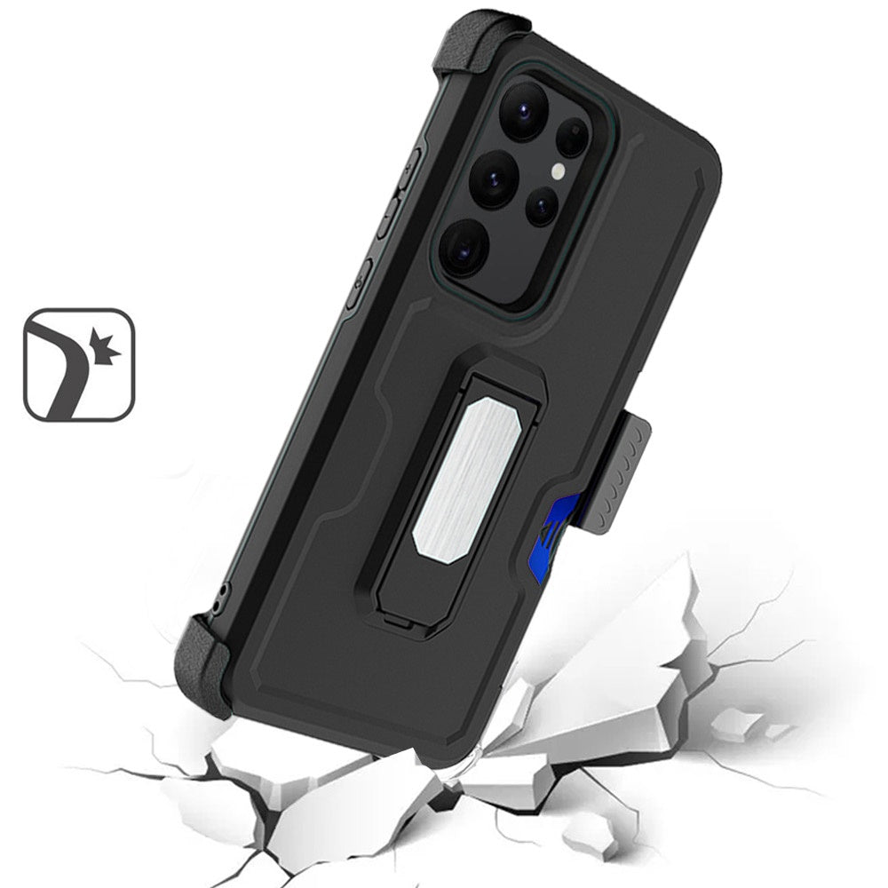 For Samsung S23 CARD Holster with Kickstand Clip Hybrid Case Cover - Black