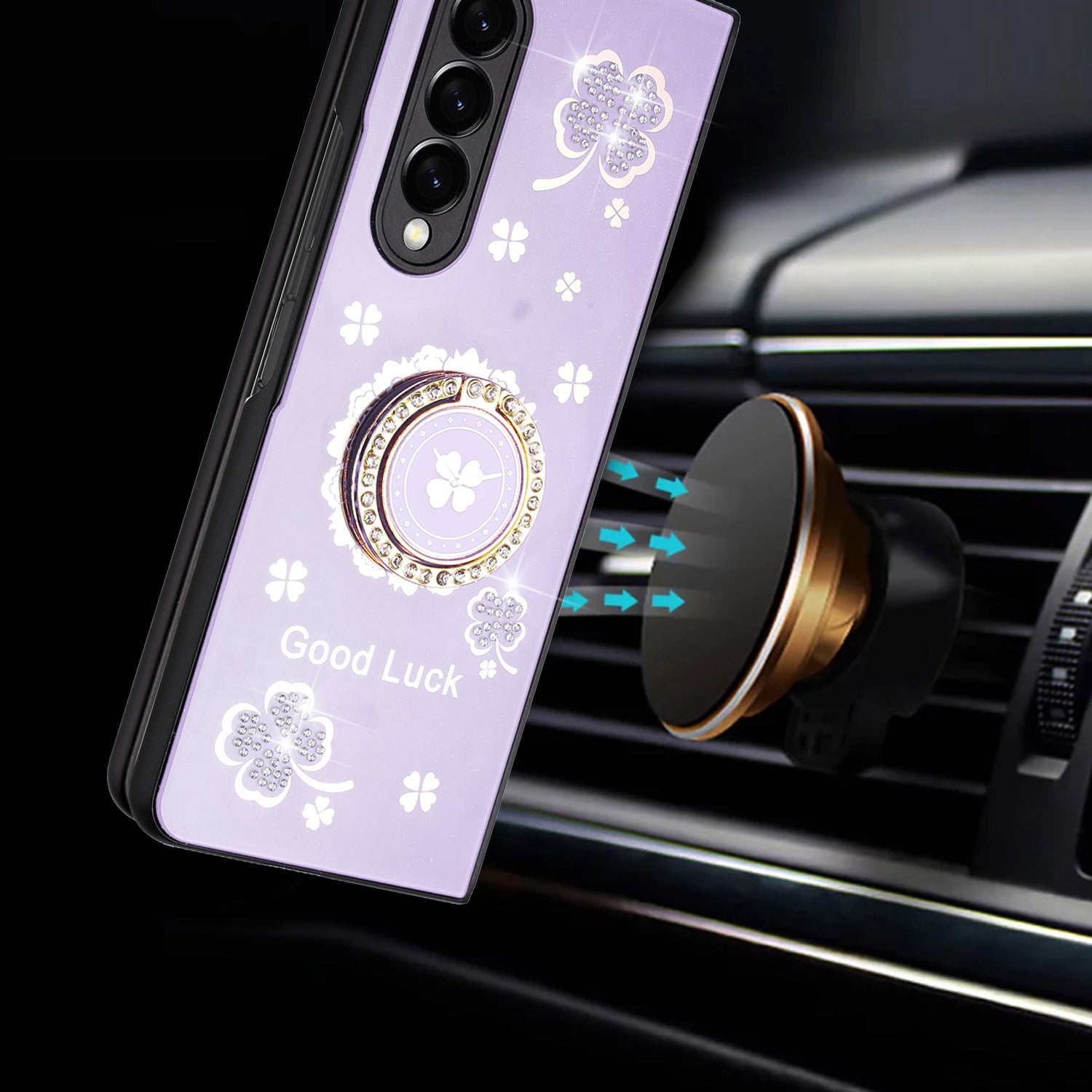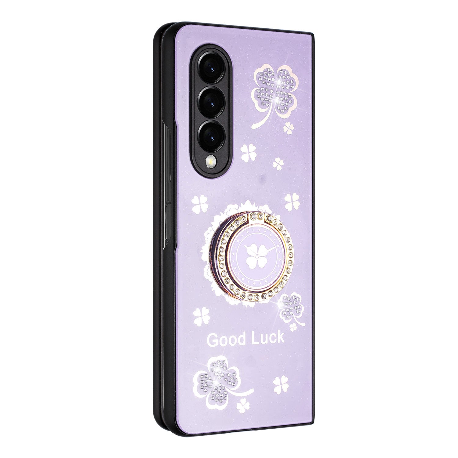 For Samsung Galaxy Z Fold3 5G SPLENDID Diamond Glitter Ornaments Engraving Case Cover - Good Luck Floral Purple